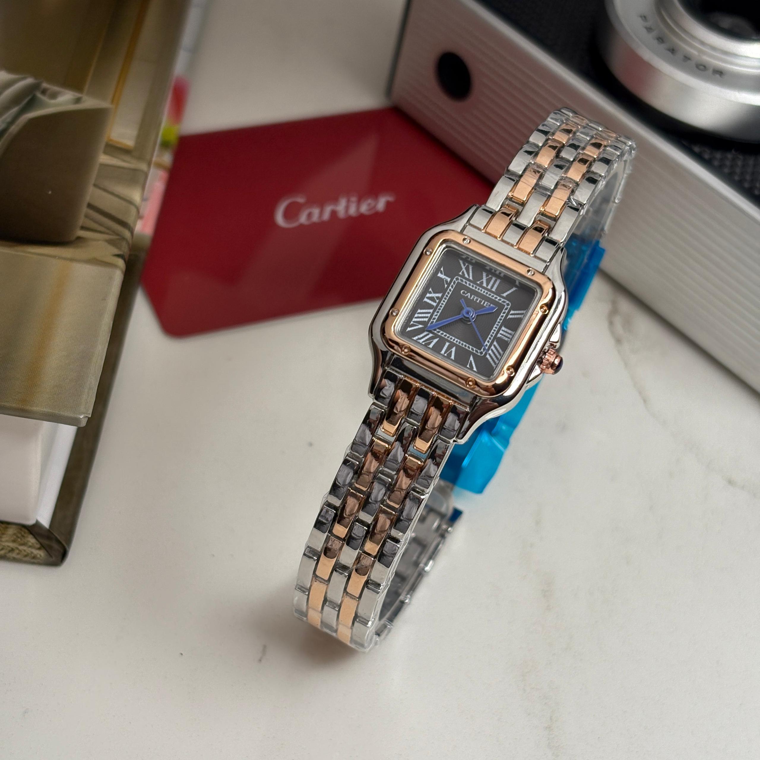 ساعت زنانه کارتیه پنتر سایز 22 میلیمتری سیلور رزگلد صفحه مشکی Cartier Panthere