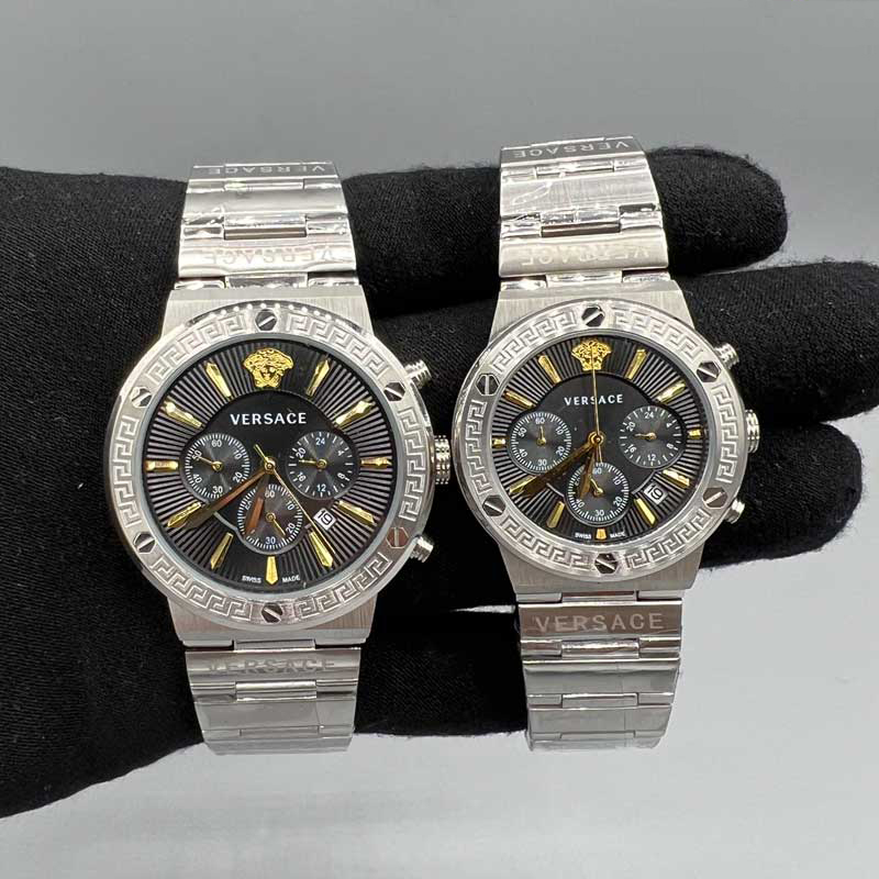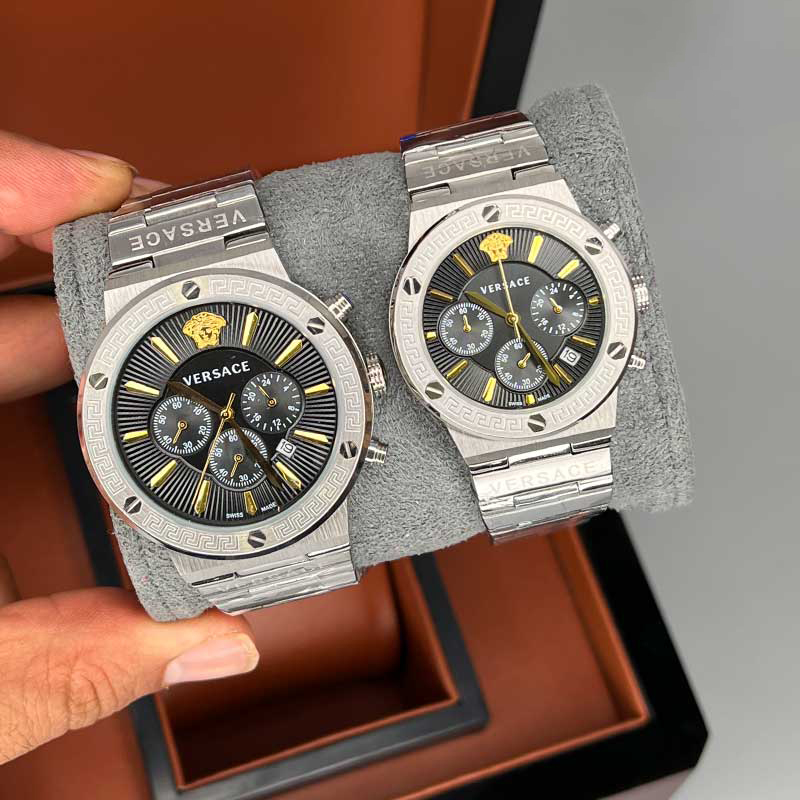 این مدل از برند ورساچه یکی از پرفروشترین مدلها است که به خاطر طراحی زیبای ساعت و حکاکیهای ورساچه دور قاب که به صورت برجسته است جلوه بسیاری زیبایی به آن داده است.جنس قاب و بند این ساعت تمام استیل و ضد حساسیت میباشد موتور آن ژاپنی و سه موتوره است.شما می توانید از میان صفحات متنوع چند رنگ با قاب های طلایی و نقره ای، ساعت کرنوگراف زیبا و اسپرت یا کلاسیک، ساعت مورد علاقه تان را انتخاب کنید.