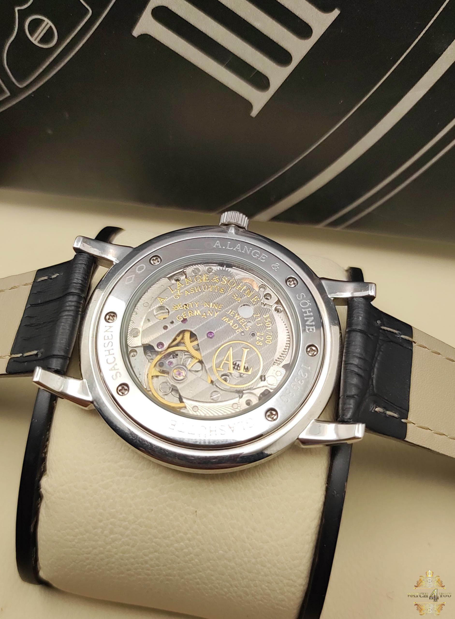 ساعت مردانه A.LANG&SOHNE یکی از اصیل ترین مدل های خانوادهی مشهور در عرصه ساعتمچی با بیشترین طرفدار در دنیا میباشد.موتور این ساعت تک توربیلون اتومات فول دیت ساخت سوییس میباشد. جنس بند نیز چرم پوست ماری با کیفیت با رنگ مشکی و ضد حساسیت بوده ،جنس شیشه و قاب این ساعت به ترتیب از مینرال گلس با کیفیت و مقاوم میباشد.رنگ ساعت کاملا ثابت میباشد.